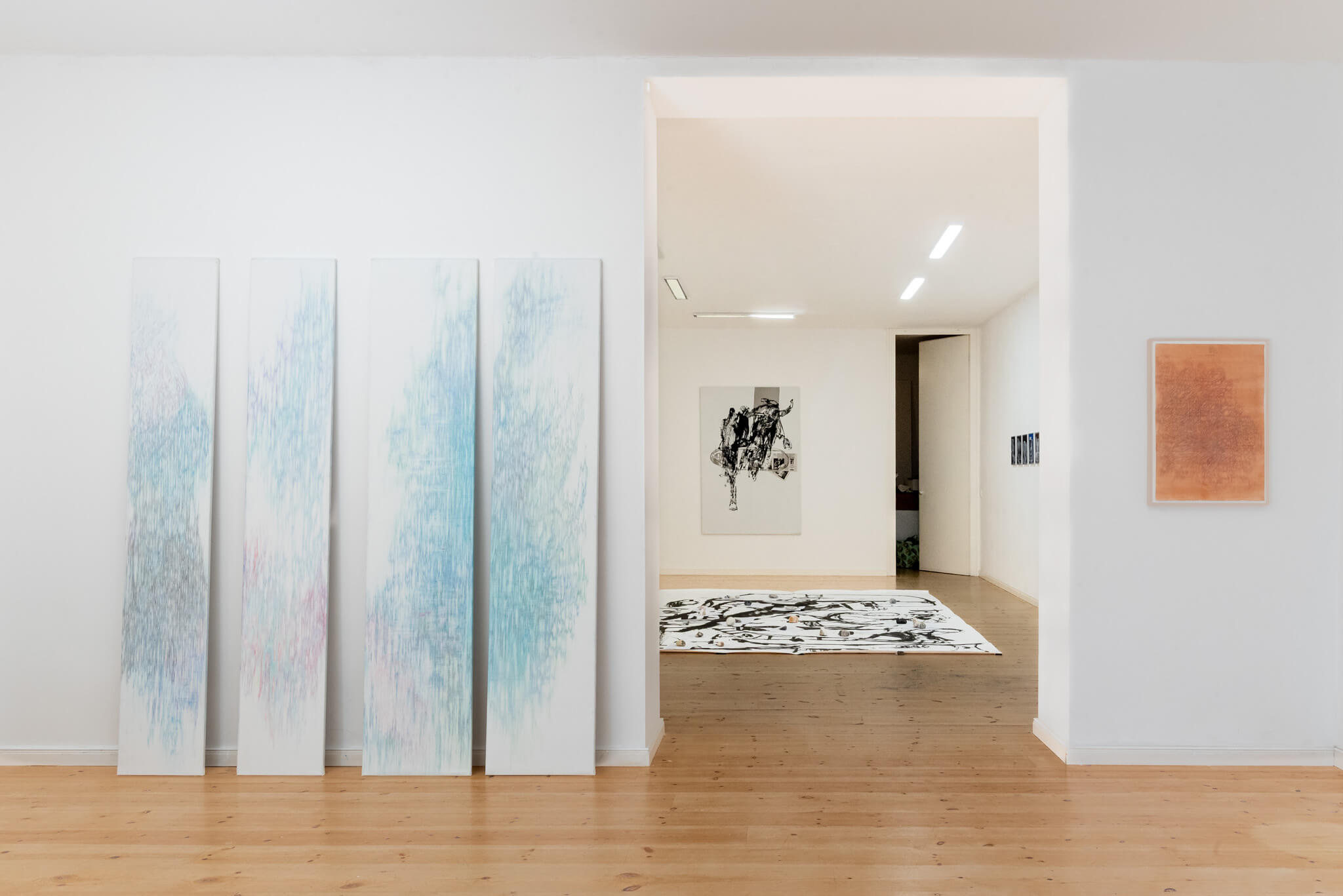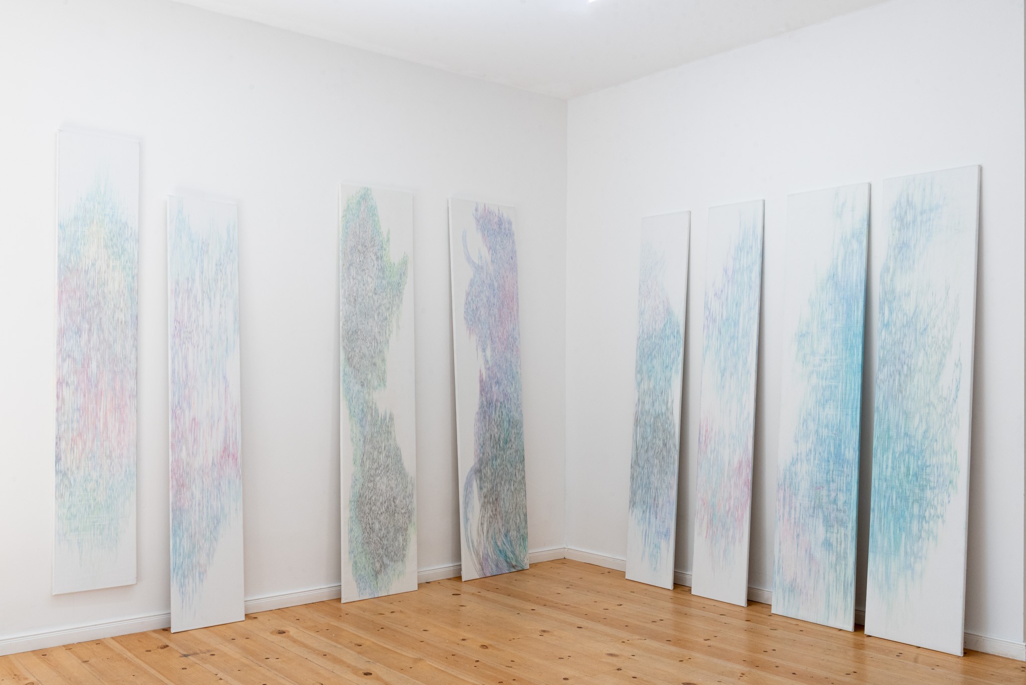 Buntstift und Bleistift auf Leinwand, ca. 50 x 240 cm